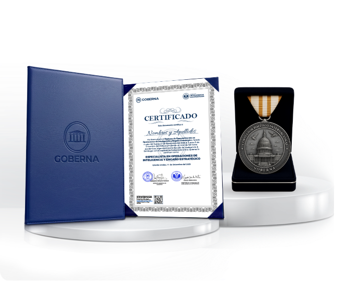 Diploma de Especialización del Jefe de Operaciones de Inteligencia y Engaño Estratégico, otorgado por la Escuela de Inteligencia y Estrategia respaldada por la consultora GOBERNA Analitics (formato digital y opción física).
