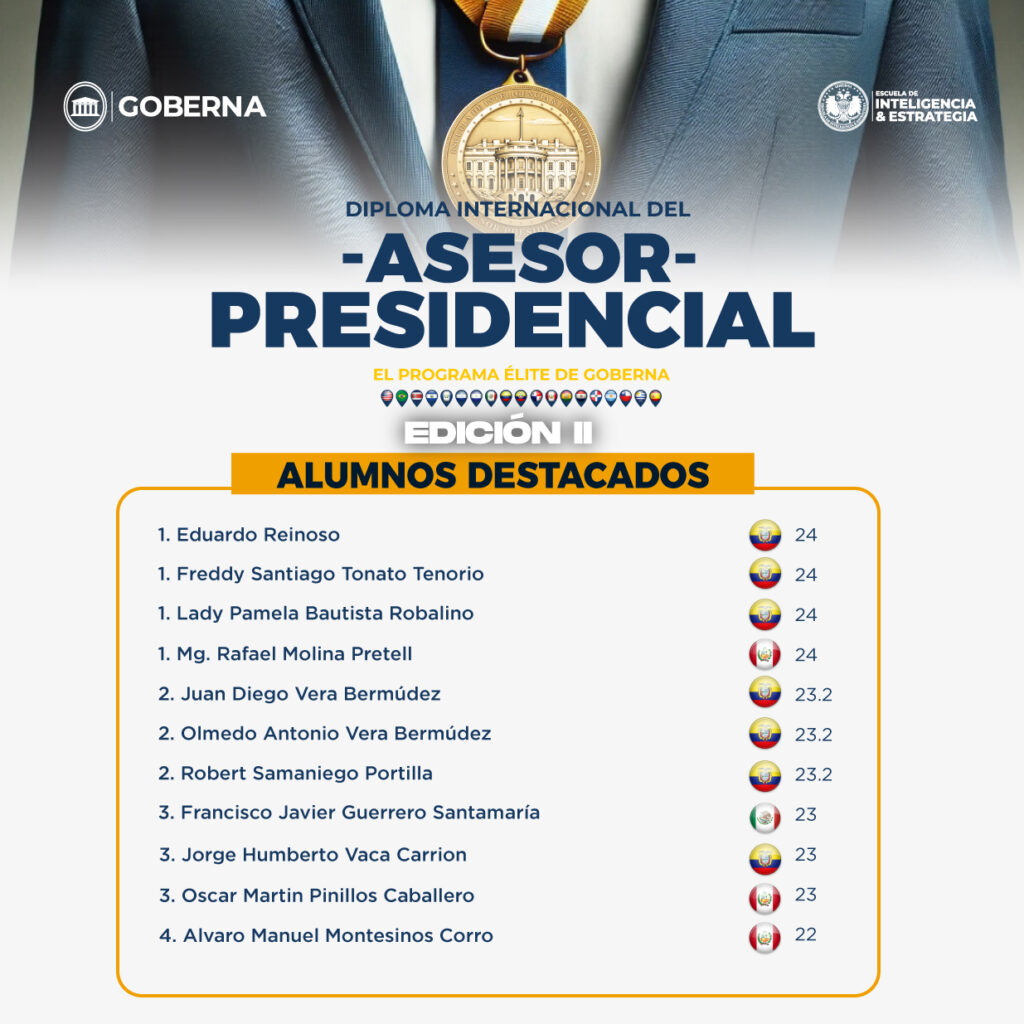 Felicitamos a los graduados de este diplomado único, quienes destacaron por su capacidad estratégica, discreción y dominio técnico en los entornos más exigentes del poder. Sus habilidades, preparación y compromiso redefinen el estándar de excelencia para quienes asesoran en la cúpula ejecutiva.